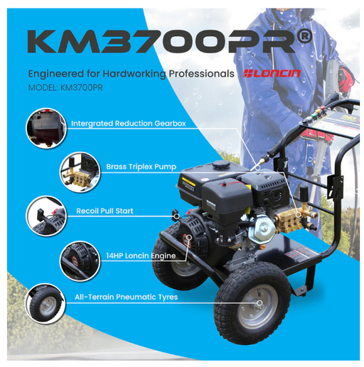 View full detailsKiam KM3700PHI (HIFLOW) Petrol Pressure Washer Jet Cleaner (14HP) 21lpm