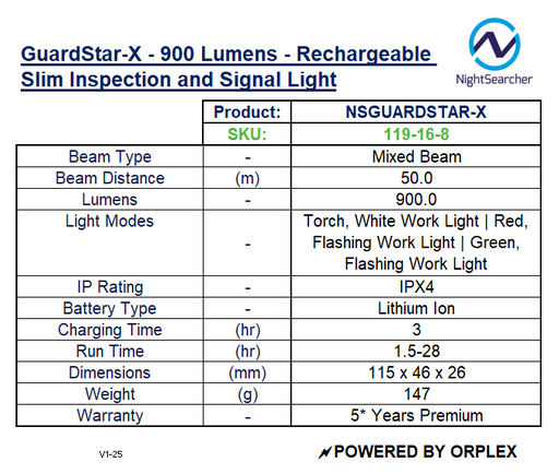 NightSearcherDesigned to fit in the palm of your hand, or pocket, the GuardStar-X measures just 115x46x26mm, and weighs only 147 grams. For your convenience, al...