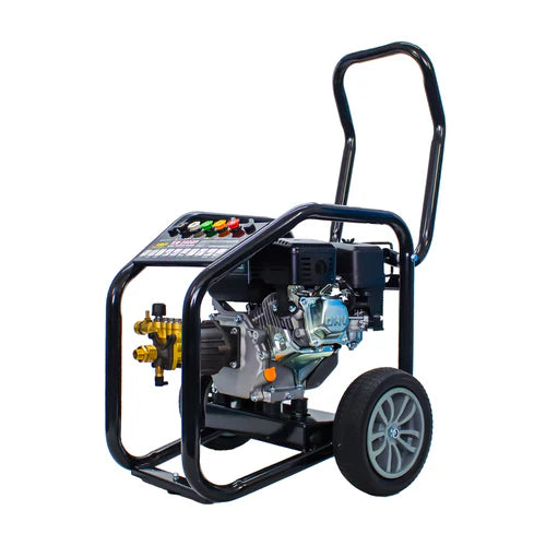 The Kiam KM2800P petrol engine driven pressure washer features a 3 piston brass axial pump providing 2800 PSI (200 bar) at 12.5 Litres per minute. Ideal on patios, driveways, forecourts, cars, vans and bikes. Widely used by motorcross competitors, boat owners, landscape gardeners and homeowners as an independent mobile unit.
